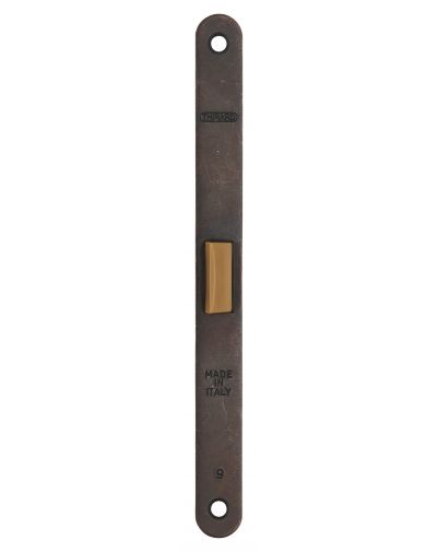 Het slot is gemaakt van reliëfstaal. De achterplaat en voorplaat hebben afgeronde uiteinden.
