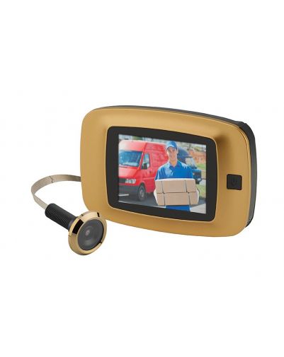 ABS behuizing. 0,3 megapixel videocamera, 105° gezichtsveld. Intern 3,2″ LCD-videoscherm. Werkt op 4 AAA-batterijen. Voor deurdikte 38-110 mm.