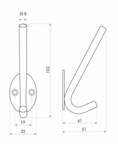 Enkele haak, 65 mm