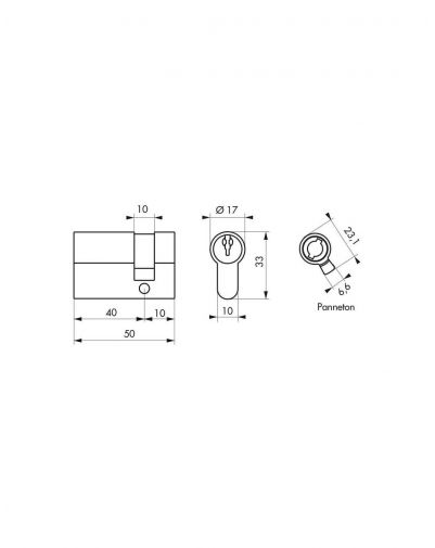 Semische cilinder enkele sleutel met Europees profiel 40 x 10 mm, STD, vernikkeld