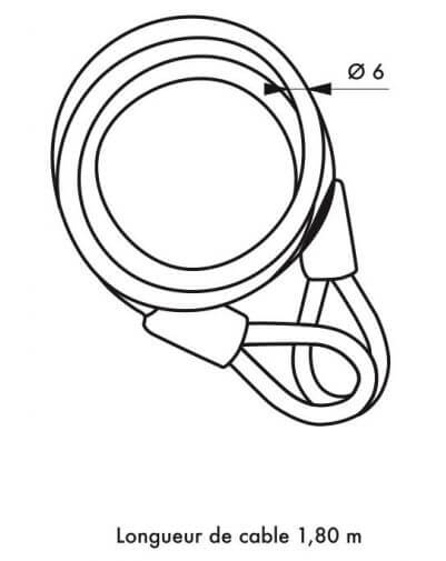 Fiets anti-diefstal kabel, TWISTY, 6 mm, 180 cm, THIRARD