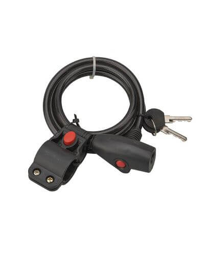 Dit fietsslot met PVC-gecoate staalkabel is het essentiële accessoire om je fiets te beschermen tegen diefstal. Met een royale lengte van 1,5 meter kun je je fiets aan hekken, palen of andere fietsen vastmaken. Het ThIRARD Twisty fietsslot is verkrijgbaar in verschillende kleuren en het vergrendelingssysteem is een sleutel- en pinsysteem. Daarnaast heeft het een systeem om de antidiefstalbeveiliging aan de fiets te bevestigen.