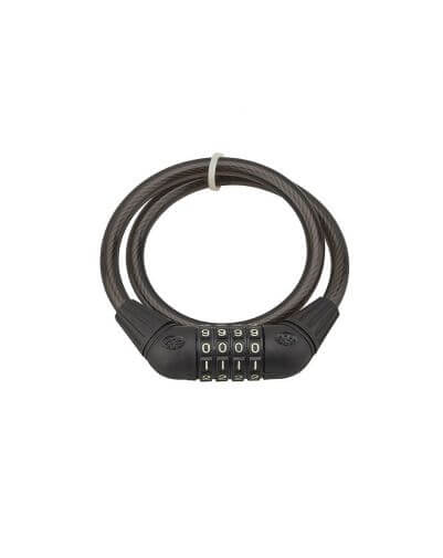Stalen kabel met PVC-mantel. 4-rings mechanisme. Herinstelbaar cijfer, 10.000 mogelijke cijfercombinaties. Zwart.