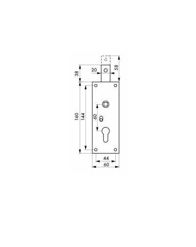 gebogen stalen beker. 1 vergrendelpunt. Binnen ontgrendelingsknop. 7 mm. Accessoires: dubbele handgreep voor slot, trekgreep voor draaideur. 1 toppunt. Met Europese profiel-halfcilinder 30 x 10 mm, voor 20 mm dikke deur, 3 sleutels.