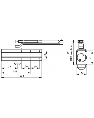 De hydraulische deurdemper van het merk Thirard zorgt ervoor dat de deur automatisch en geruisloos sluit. De demper is omkeerbaar (kan links of rechts worden geïnstalleerd) en wordt geleverd met een montageset. De sluitsnelheid wordt aangepast door de speciale schroef vaster of losser te draaien.