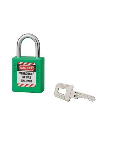 Voor extra veiligheid beschikt dit industriële hangslot over een pinmechanisme en dubbele vergrendeling, evenals een “captive key” functie (het hangslot moet gesloten zijn om de sleutel te verwijderen). Dit hangslot wordt geleverd met een sleutel en een set labels. Optioneel is er de mogelijkheid om af te zien van automatische vergrendeling en de “Captive Key”-functie.