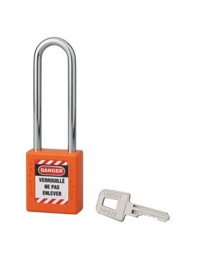 Voor extra veiligheid beschikt dit industriële hangslot over een pinmechanisme en dubbele vergrendeling, evenals een “captive key” functie (het hangslot moet gesloten zijn om de sleutel te verwijderen). Dit hangslot wordt geleverd met een sleutel en een set labels. Optioneel is het mogelijk om de automatische vergrendeling en de “Captive Key”-functie uit te schakelen.