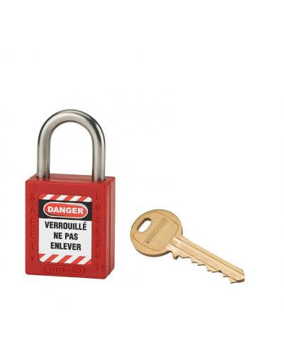 THIRARD veiligheidsslot, ideaal voor elektrische toepassingen, met ABS (niet-geleidend materiaal) behuizing en roestvrijstalen deur, waardoor het bestand is tegen warmteschokken en corrosie. Voor nog meer veiligheid beschikt dit industriële hangslot over een pin- en dubbel vergrendelingsmechanisme en een ‘captive key’-functie (het hangslot moet gesloten zijn om de sleutel te kunnen verwijderen) Geleverd met een sleutel en een set labels. Optie om de automatische vergrendeling en ‘captive key’-functie op te heffen. Deze industriële veiligheidshangsloten hebben dezelfde opening, op verzoek is er de mogelijkheid om ze op te nemen in het hoofdsleutelsysteem, maar ook om individuele sleutels te leveren.