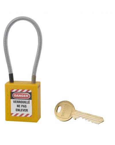 Industrieel veiligheidsslot, roestvrijstalen kabel Ø 4,76 X 150 mm (geel), THIRARD