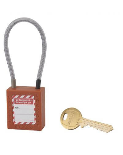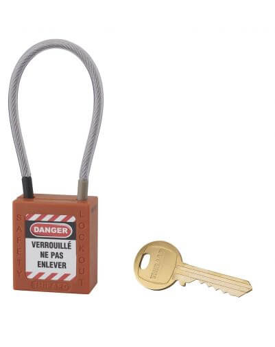 THIRARD veiligheidshangslot ideaal voor elektrische toepassingen, met ABS (niet-geleidend materiaal) behuizing en roestvrijstalen kabeltype slot met diëlektrische en elektrostatische bescherming. Dit industriële veiligheidshangslot is bestand tegen schokken, hitte en corrosie en met de flexibele kabel kunnen apparaten worden vergrendeld die niet kunnen worden beveiligd met een standaard hangslot. Geleverd met sleutel en labelset. Deze hangsloten met elektrische vergrendeling hebben dezelfde opening, op aanvraag is er de mogelijkheid om een Master Key, individuele sleutelborging en automatische vergrendeling toe te voegen.