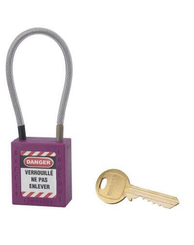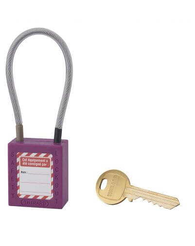 Industrieel veiligheidsslot, roestvrijstalen kabel Ø 4,76 X 150 mm (paars), THIRARD