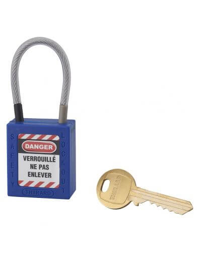 Industrieel veiligheidsslot, roestvrijstalen kabel Ø 4,76 X 90 mm (blauw), THIRARD