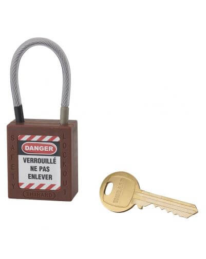 Industrieel veiligheidsslot, roestvrijstalen kabel Ø 4,76 X 90 mm (bruin), THIRARD