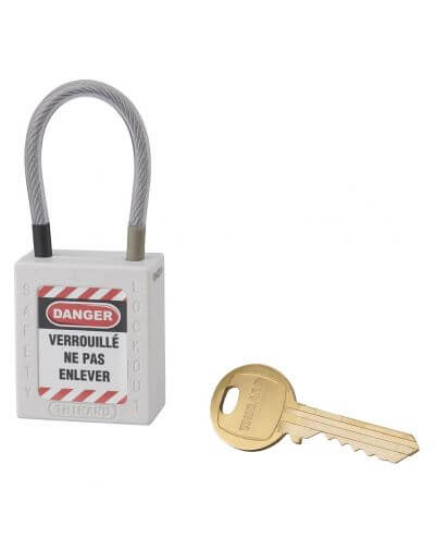 Industrieel veiligheidsslot, roestvrijstalen kabel Ø 4,76 X 90 mm (wit), THIRARD