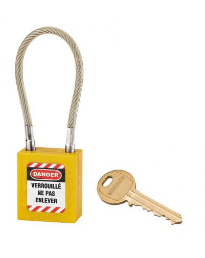 Industrieel veiligheidsslot, roestvrijstalen kabel Ø 5 X 150 mm (geel), THIRARD