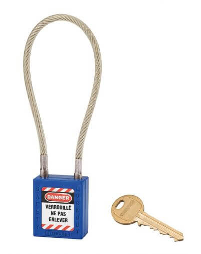 Industrieel veiligheidsslot, roestvrijstalen kabel Ø 5 X 240 mm (blauw), THIRARD