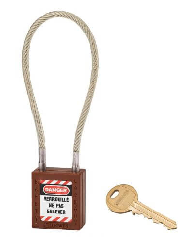 Industrieel veiligheidsslot, roestvrijstalen kabel Ø 5 X 240 mm (bruin), THIRARD