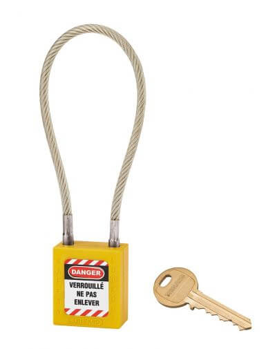 Industrieel veiligheidsslot, roestvrijstalen kabel Ø 5 X 240 mm (geel), THIRARD