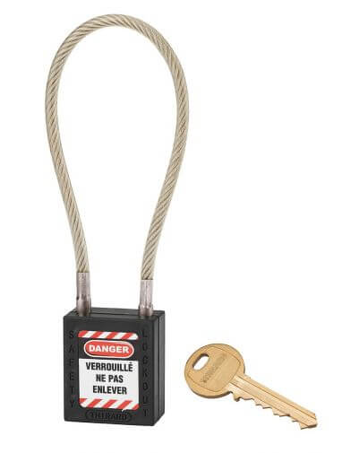Industrieel veiligheidsslot, roestvrijstalen kabel Ø 5 X 240 mm (zwart), THIRARD
