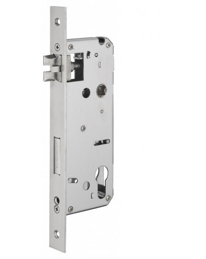 Omkeerbaar insteekslot met antipaniekfunctie en roestvrijstalen tegenplaat. Middenafstand: 50 mm, middenafstand: 85 mm.