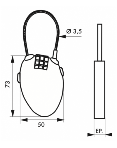 ABS behuizing. Roestvrijstalen kabel diameter 3,5 mm. 0,55 m. PVC-mantel. Met instelbaar cijfer