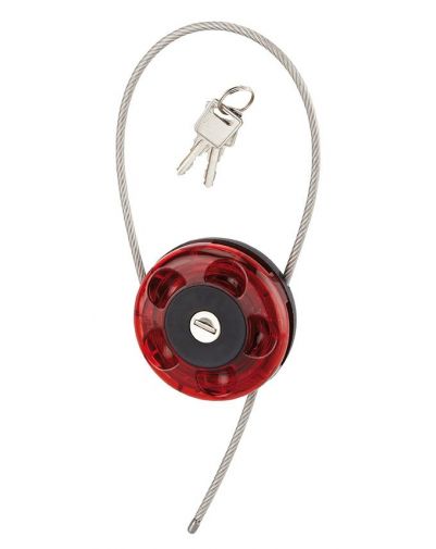 ABS behuizing. Roestvrijstalen kabel diameter 4 mm. 0,75m. PVC-mantel. 2 vernikkelde sleutels