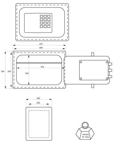 • Afmetingen buitenkant: 350 x 470 x 350mm;