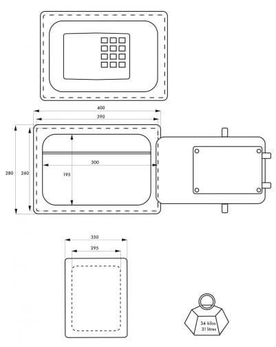 - Inwendige afmetingen: 260 x 390 x 295mm;