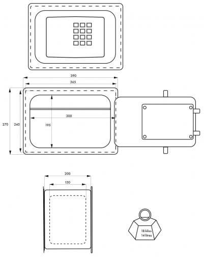 - Afmetingen buitenkant: 270 x 390 x 200mm;