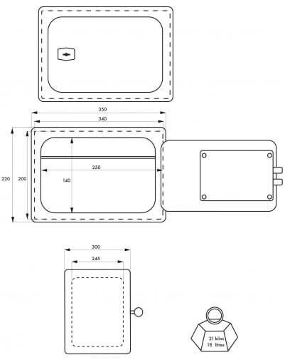 - Inwendige afmetingen: 200 x 340 x 245mm;