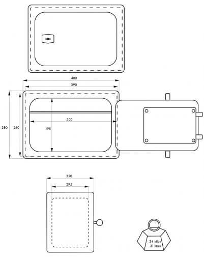 • Inwendige afmetingen: 260 x 390 x 295mm;