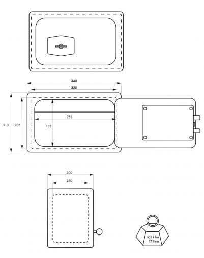 • Afmetingen buitenkant: 210 x 340 x 300mm;