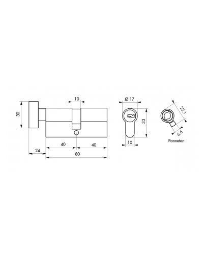 Knopcilinder 40 x 40, standaard, hoge veiligheid, Doorvoer 1, 5 sleutels, vernikkeld – THIRARD