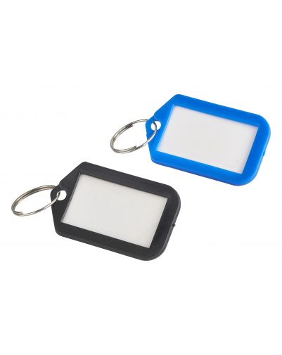 De verpakking bevat 10 verschillend gekleurde label sleutelhangers.