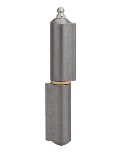 Dit lasbare scharnier is gemaakt van staal, met een gezandstraald oppervlak om het lassen te vergemakkelijken. Het scharnier heeft een messing ring en is ontworpen voor metaalbewerking