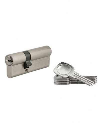 Nikkelen omkeerbare platte vernikkelde sleutels. Bescherming tegen uittrekken. Dit model deurknop is een cilinder met een verhoogd veiligheidsniveau dankzij de 10 pinnen. Bescherming tegen doorboren wordt geboden door een gehard stalen pin, en de nok is ontworpen om bescherming te bieden tegen uittrekken. Deze cilinder past eenvoudig in elk Europrofiel cilinderslot en de sleutel kan in beide richtingen worden gebruikt omdat de cilinder dubbel is uitgevoerd. De vernikkelde afwerking geeft deze cilinder een eersteklas uitstraling.