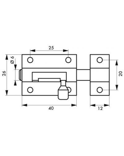 40 mm gebogen roestvrij stalen plaat. Tegenplaat 12 mm in gebogen roestvrij staal. Ronde schuifgrendel Ø 6 mm. Ovale knop van roestvrij staal. Roestvrijstalen afwerking voor buitengebruik.