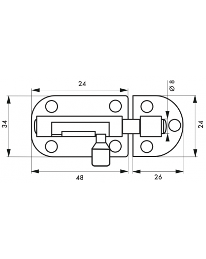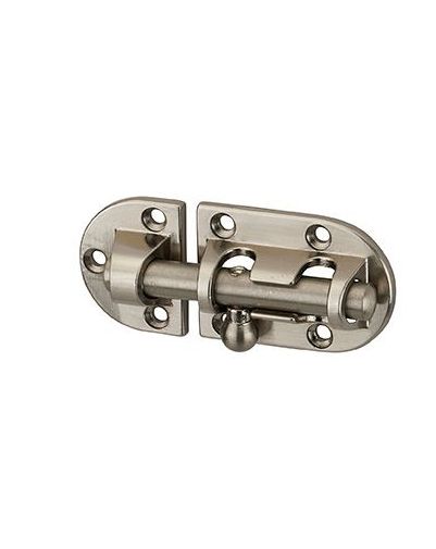 Ronde schuifkogel. Ovale trekknop. Gebogen stalen plaat.