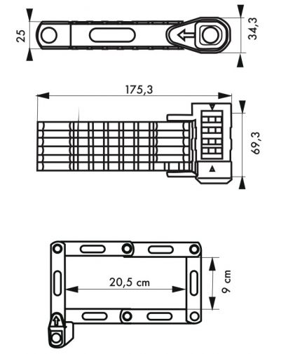 - armen 25 tot 32 mm breed, afhankelijk van het uiteinde.