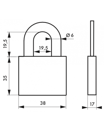 Stalen behuizing. Poort van vernikkeld gecementeerd staal. Stiftmechanisme.3 sleutels. Het hangslot is ontworpen voor gebruik binnen gebouwen, om kasten en lades, dozen en kisten, deuren van kamers of bijgebouwen, enz. effectief te beveiligen. Bij dit hangslot worden twee sleutels geleverd.