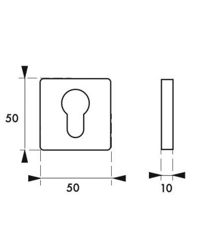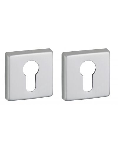 VELES 50×50 vierkante rozettengarnituur met sleutelgat, F1 zilverkleurig afgewerkt