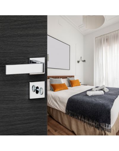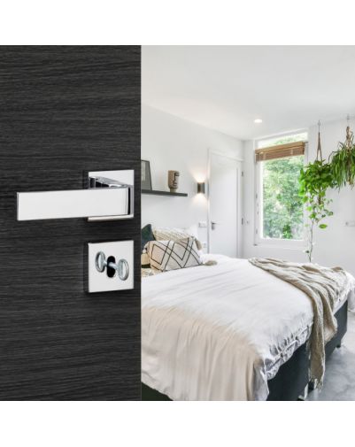 HomeWinkelDeurgreep accessoiresPaar vierkante rozetten 50×50 met sleutelgat, gepolijst chroom, THIRARD