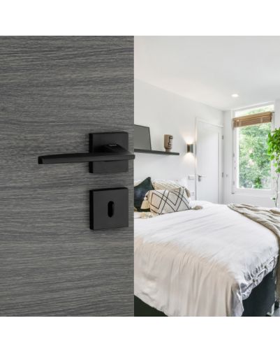 HomeWinkelDeurgreep accessoiresPaar vierkante rozetten 50×50 met sleutelgat, mat zwart, THIRARD
