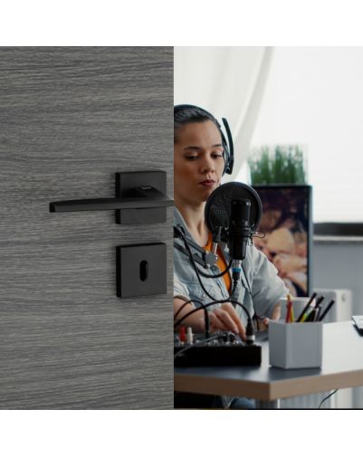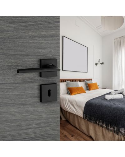 Paar vierkante rozetten 50×50 met sleutelgat, mat zwart, THIRARD