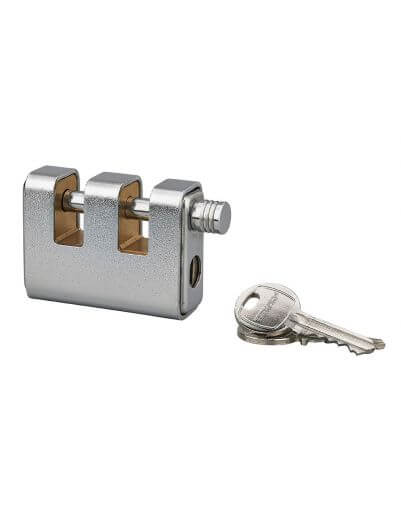 Het LAND BLINDED bouwplaats hangslot is een zwaar veiligheidshangslot dat ontworpen is voor gebruik in de bouwsector voor het beveiligen van deuren en poorten, machines en apparatuur, bijgebouwen en containers, enz. Het massief stalen huis heeft een extra gecementeerd stalen schild, waardoor het beter bestand is tegen boren en doorboren. Het verchroomde stalen hek is voorzien van bouten en de drie beschermende ‘schouders’ van het gepantserde huis maken doorsnijden onmogelijk. Bij dit hangslot van THIRARD worden drie sleutels geleverd, om de toegang te delen of in geval van verlies. Het hangslot profiteert van de “captive key” functie, waarbij de sleutel alleen kan worden verwijderd als het hangslot is vergrendeld.