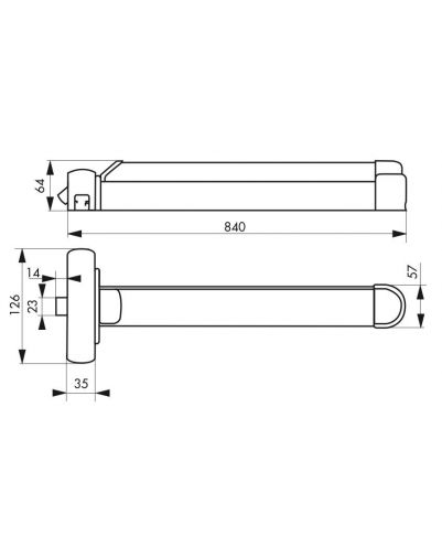 Structuur, afmetingen en prestaties in overeenstemming met de nieuwe Europese norm CE NF EN1125. Gegalvaniseerde stalen sluitbout. Stalen behuizing. Aluminium staaf, lengte 0,84 m, die kan worden bijgesneden. Omkeerbaar. Voor deur met maximale hoogte van 2635 mm. Accessoires: buitenhandgreep of knop, geprofileerde halve cilinder 30 x 10 mm.