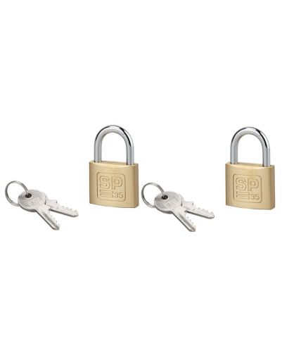 Brass monobloc behuizing. Poort van gecementeerd staal. Eenvoudige verankering. Het hangslot is ontworpen voor gebruik binnen gebouwen, voor het effectief beveiligen van kasten en laden, dozen en kisten, deuren van kamers of bijgebouwen, etc. Bij dit hangslot worden twee sleutels geleverd.