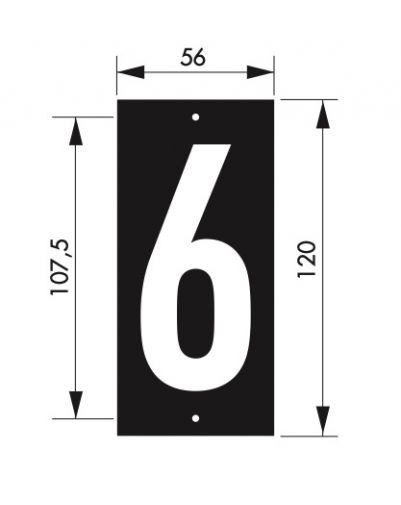 Signaleringsplaat 56 x 130 mm nummer “6” – schroefbevestiging