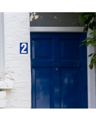 Het is mat afgewerkt. Wit cijfer op een blauwe achtergrond.