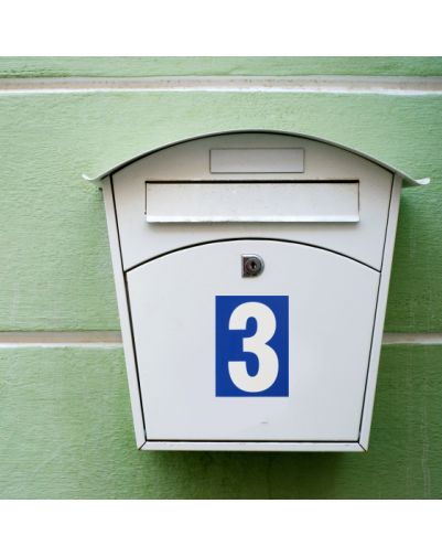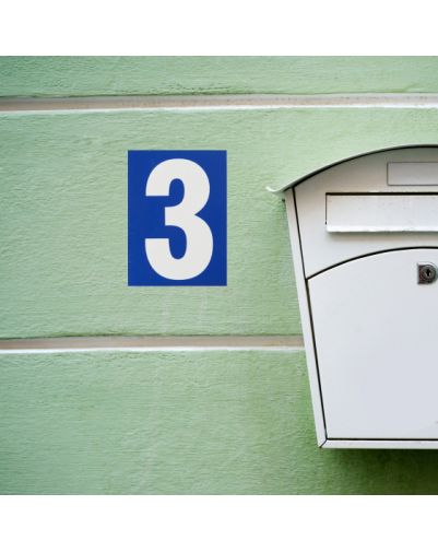 Het is mat afgewerkt. Wit cijfer op een blauwe achtergrond.